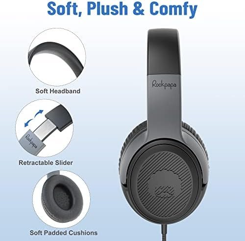 [ Microphone & Compatibility ] : Rockpapa wired headphones works with the in-line microphone perfect for online and calls, also play/pause the music, This over-ear headphones support devices with 3.5mm audio jack like Chromebook, Tablet, Computer, Laptop, PC, Switch, CD player, Oculus etc.