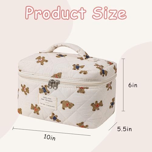 [Product Size] Our quilted makeup bag measures 10×6×5.5 inches, easy to carry. It’s compact and lightweight design makes it easy to pack and carry with you on the go, whether you’re traveling or just running errands. It’s soft and easily foldable.