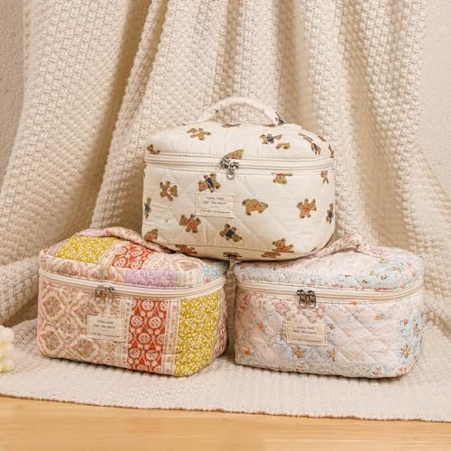 [Fashionable Design]:The cute and sweet design adds a touch of delicacy and romance, reflecting your loveliness and sweetness. Featuring a beautiful floral print, this quilted makeup pouch is a cute and fashionable accessory for any makeup lover. Different patterns can match your outfit, making you unique in the crowd and attracting a lot of attention.