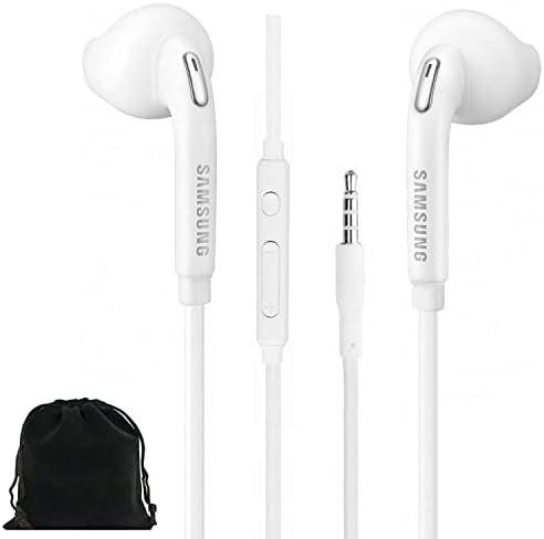 Samung Wired Earbuds Original 3.5mm In-Ear Headphones for Samsung Galaxy S10, S10 Plus, S10e Plus, Note 10, A71, A31 – Microphone & Volume Remote – Includes Black Velvet Carrying Pouch – White