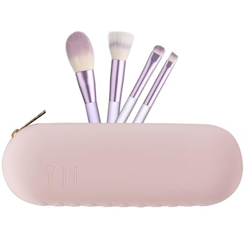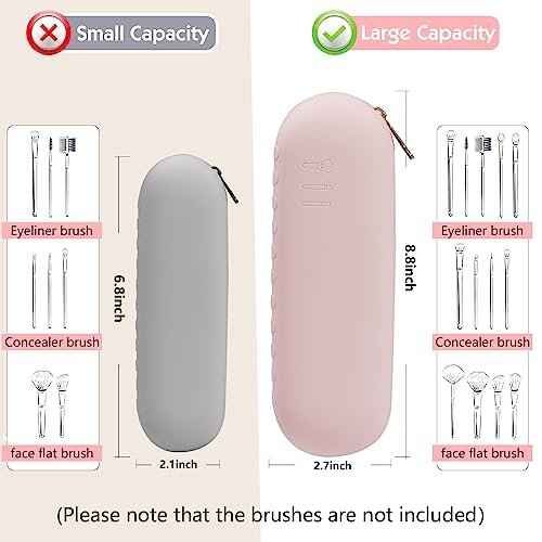 Silicone Makeup Brush Holder, Large Capacity Makeup Brush Bag, Portable Travel Cosmetic Brush Bag for Travel and Daily, Upgraded version (Standard version, Pink2)