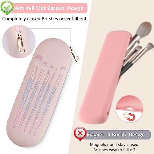 ▶Anti-Fall Out:Our silicone makeup brush holder is the latest design with anti-fall out zipper. The zipper closure does a better job of preventing your brushes from falling out and keeping them clean. (Please note that the brushes are not included)