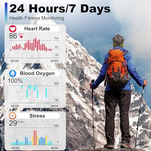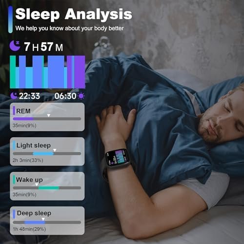 【24h/7D Health Monitoring】The fitness watch traker is equipped with the sensor, real-time 24h/7D detect your health data, such as heart rate,SpO2 and stress.You can adjust the personal physical condition according these date feedback.sleep time and quality.You can know your sleep quality include light sleep/deep sleep/awake/REM through the smart watches.