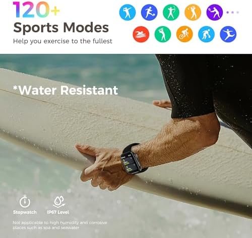 🏃【120+ Sports Modes, Count Every Workout】An ultimate easy-to-use smart watch with 120+ sports modes. From basketball and football to yoga and Pilates, whether you’re a professional athlete or daily exercise, allowing you to get data for all your favorite sports. You can set a variety of goals for different workout types on app, such as Pace, Distance, and Calorie goal which help better understand exercise status and track progress. Water-resistance can withstand all your daily activities usage.