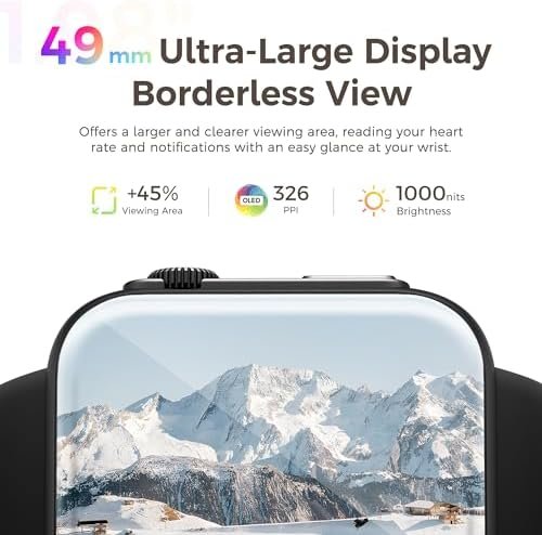 ⌚【Fully Upgraded 49mm Smart Watch】49mm AMOLED ultra-large screen with borderless tech, offers a 45%* bigger viewing area, see everything you need on your smart watch. Tap or swipe on the full touch screen to get smooth operation response in milliseconds. Up to 100%RGB color gamut, brightness and resolution are greatly improved, providing excellent visual effects. High quality zinc alloy watch frame with 2.5D curved scratch-resistant glass, combining texture and durability.
