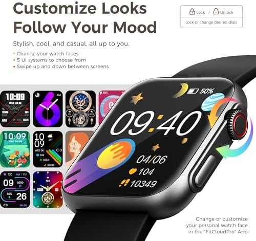 🔗【More Practical Functions & Password Setting】Slide up/down/left/right on the watch face page to explore more shortcut function: Voice assistant, Brightness, No disturb mode, Music, Flashlight, Game, Calculator, Sedentary reminder, Find phone, Power saving mode, Weather, Timer, Alarms, Stop watch, Calendar, Camera etc. Supports customize a password on the smart watch to ensure your pravicy and safety.