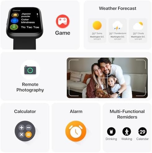 TOOLS FROM YOUR WRIST — The fitness watch is equipped with numerous beneficial features, including a calculator, breath training, alarm clock, weather forecast, event reminder, cycling tracking, stopwatch, timer, music playback control, camera operation, find my phone function, and more.