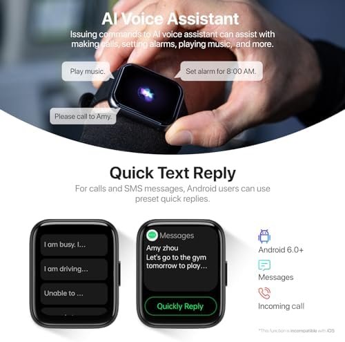 Smart Watch for Men Women – Answer/Make Calls/Quick Text Reply/AI Control, 1.83″ for iPhone Samsung Android Phones Compatible IP68 Smartwatch Heart Rate Blood Oxygen Fitness Tracker (Black)