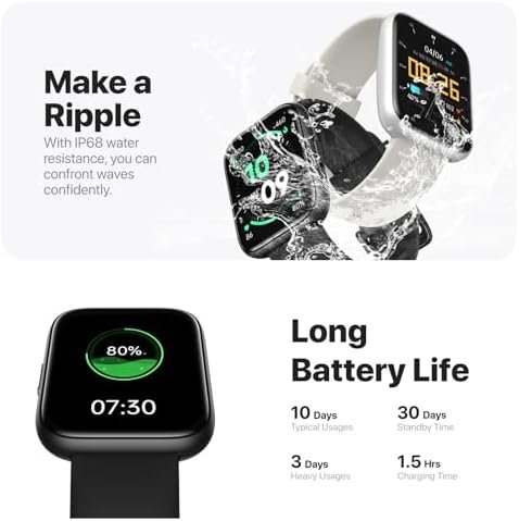 STABLE & CLEAR VOICE CALLS — Enabled by an advanced noise reduction algorithm in the smartwatch, ensuring your voice is clear amidst surrounding noise. The smartwatch’s Bluetooth v5.3 calling chip guarantees a smooth, uninterrupted connection, lowers battery usage, and expands the range of connectivity.