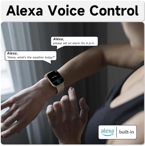 [Alexa Built-in Wrist Watch] This newly upgraded smartwatch is with built-in Alexa for voice assistant. You can ask Alexa to check news, weather, set an alarm, control smart home devices like lights, air conditioning. With Alexa built-in watch on your wrist, you will get a personal voice assistant anywhere.