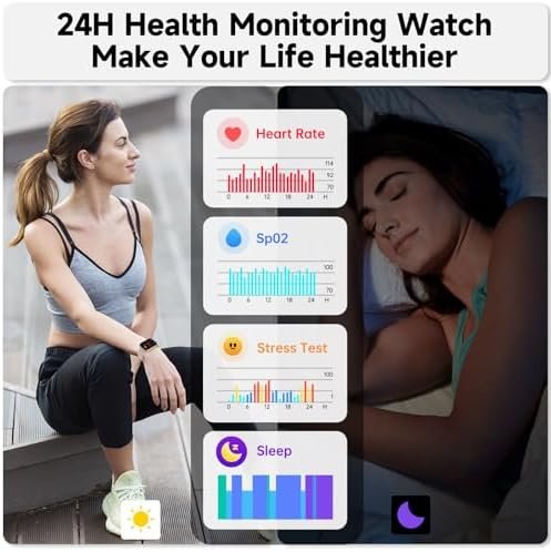 [24/7 Health Monitor] This health tracker with heart rate & SpO2 monitor will record your all day activities. This watch designs as female-friendly ones as its cycle tracking function. As a smart helper,it also works as a drink reminder, stress tester,breathe coach,guard your health from all aspects.