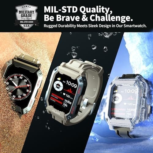 Smart Watch Rugged and Military with 5ATM Waterproof Bluetooth Call(Answer/Dial Calls) AI Assistant, Long-Lasting Battery Life, Multiple Sports Tracking, Health Monitoring, 2.02” HD Display