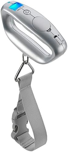 Smart Weigh Digital Portable Luggage Scale, 50kg /110lbs Capacity, with EZ Grip Handle, Travel Hanging Scale w/Strap, Bag Weight Gadget w/Tare Function for Suitcases, Batteries Included, Silver