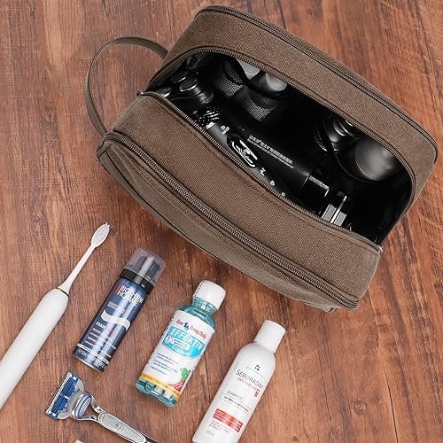 【High-Quality and Convenient】: The WANDF mens leather toiletry bag is made of durable and water-resistant canvas and PU leather. The sturdy materials and well-designed structure keep the bag in shape. The leather handle on the side makes it easy to carry and can also be used for hanging. The soft fabric makes it more comfortable to carry.
