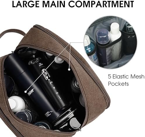 【Large Capacity Main Compartment】: With a size of 9.8*5.1*6.3 inches, the WANDF mens toiletry bags for traveling can meet most travel needs. There is enough space to store full-sized items like toothpaste, facial wash, mouthwash, lotion, shampoo, razor, etc. Five internal mesh pockets allow for upright storage of your toiletry bottle.