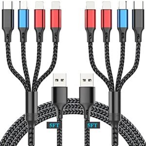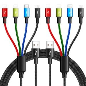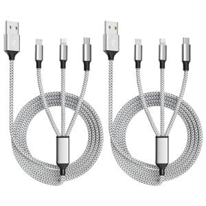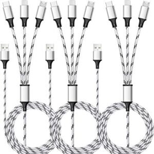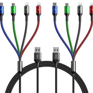 Multi Charging Cable,3.5A Multi Charger Cable,Braided 4 in 1 Charging Cable,Multi USB Cable, Fast Charging Cord with IP/Type C/Micro USB Port for Cell Phones/Tablets/Samsung Galaxy & More(2Pack 4Ft)