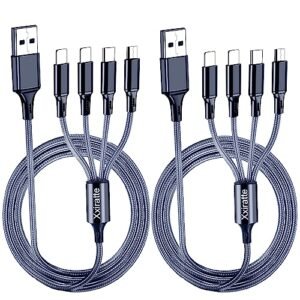 Multi Charging Cable, Multi Charger Cable 2Pack 4FT Nylon Braided Universal 4 in 1 Multiple USB Cable Fast Charging Cord Adapter with Type-C, Micro USB Port Connectors for Cell Phones Tablet More