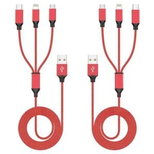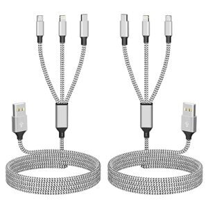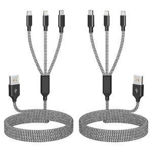Multi USB Charging Cable 3A, 3 in 1 Fast Charger Cord Connector with Dual Phone/Type C/Micro USB Port Adapter, Compatible with Tablets Phone 12 11 Pro 8 7 6 Samsung Galaxy (4FT/2Pack Charging Only)