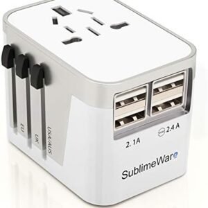 International Power Adapter Travel Plug – 4 USB Ports Universal Work for 150 Countries – 120 Volt Adapter – Adapter Type C Type A Type G Type I f for UK Japan China eu Europe European By SublimeWare